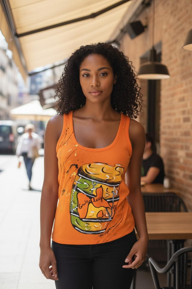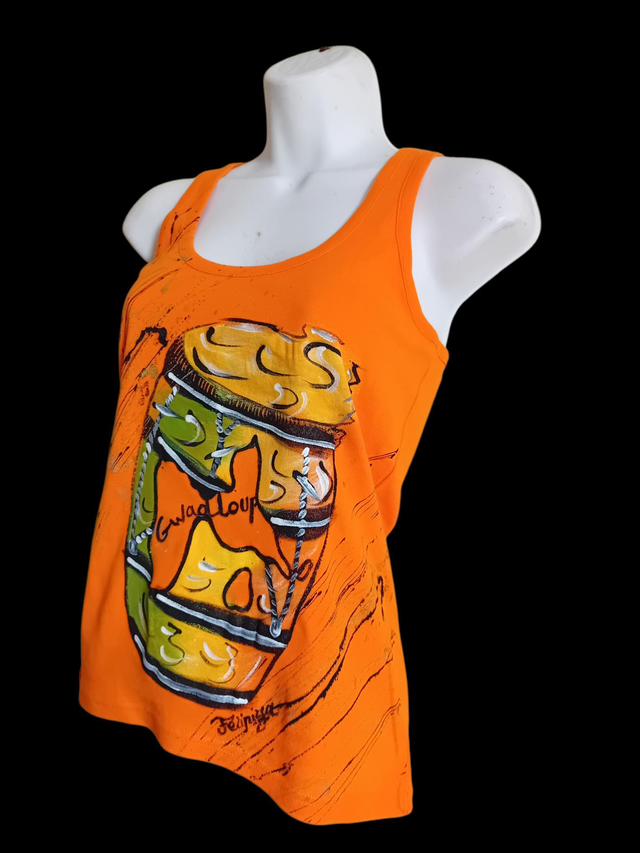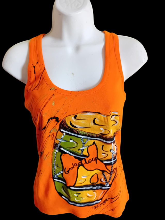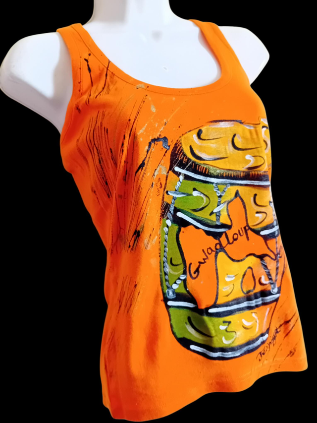 Débardeur femme peint main 100% coton. Dos nageur. Lavable à 30°. Peinture spéciale tissu.
